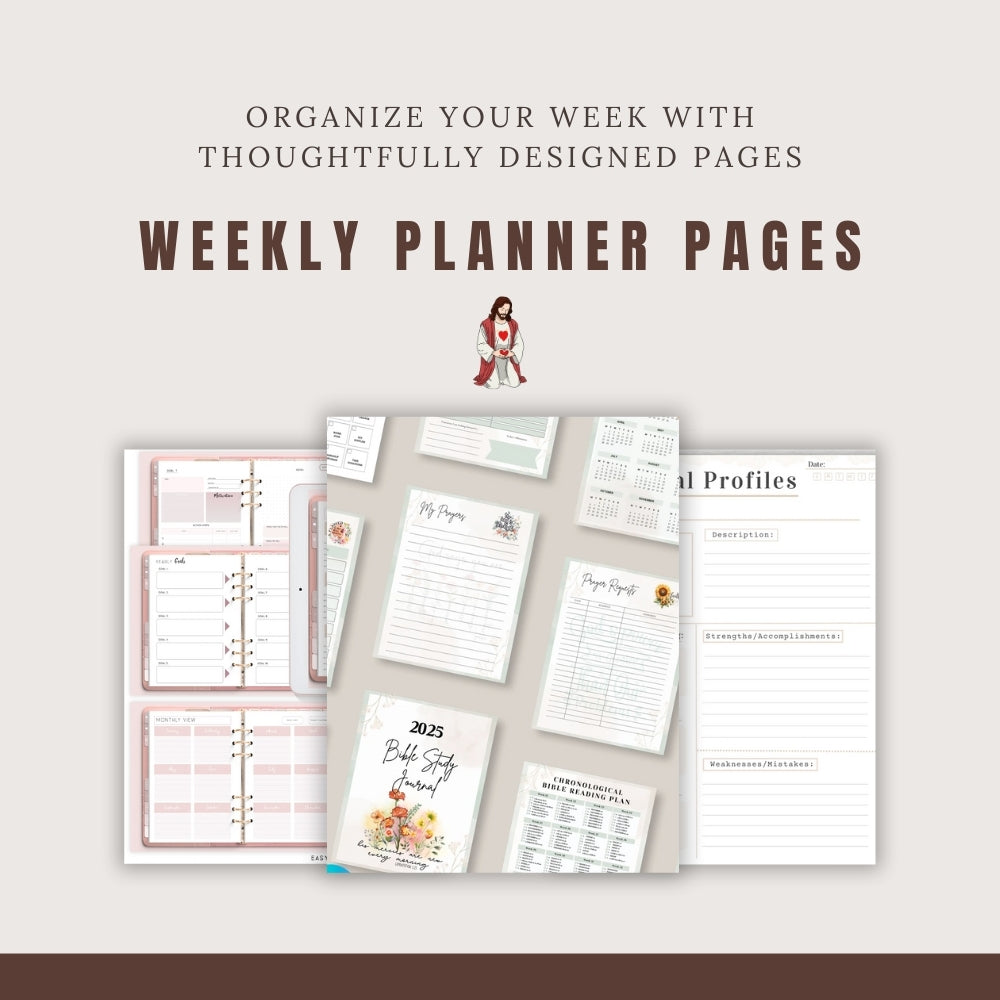 Our 52 Week Bible Study Bundle provides weekly devotionals, trackers, and prompts to guide your journey. Build a consistent and fulfilling connection with scripture starting today.